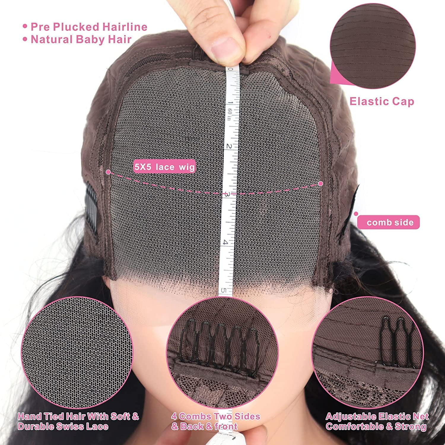 Feature100% Human HairLace Wig Type5x5 Pre-cut Lace Closure Wig