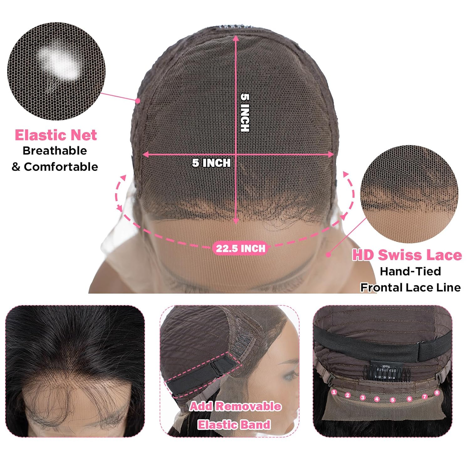 Average Cap 21.5"-22.5", Fit For Most People, With Adjustable Straps And Combs, Clean And Breathable Easy To Install And Adjust