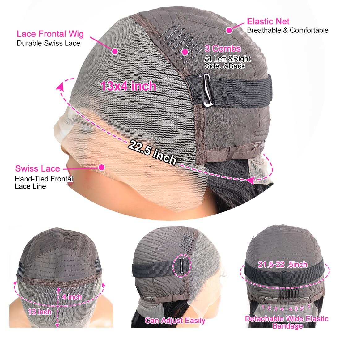 Average Cap :21.5"-22.5", Fit For Most People, With Adjustable Straps And Combs, Clean And Breathable Easy To Install And Adjust