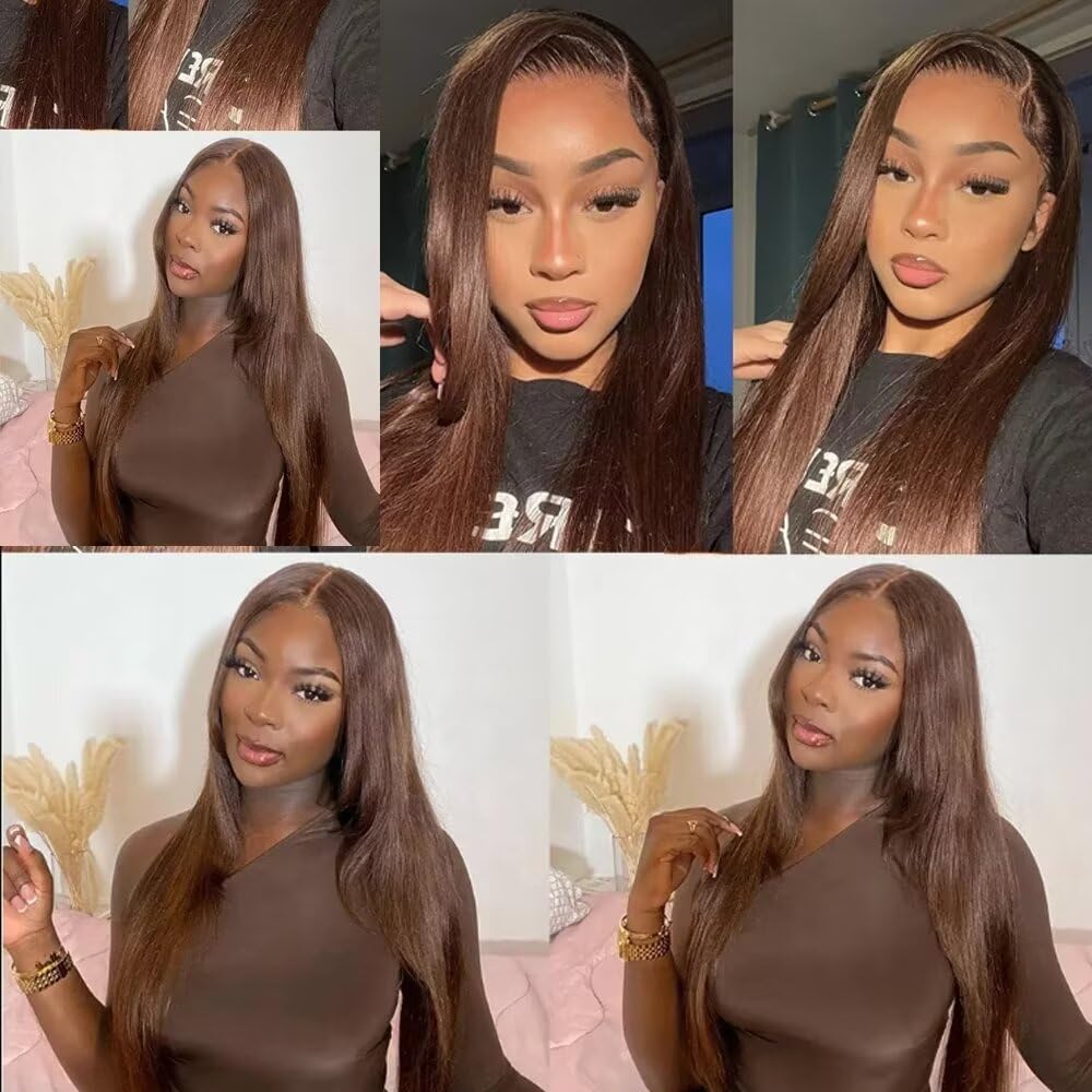 Chocolate Brown 13x4 Lace Front Wig Human Hair Color 4 Body Wave 150% Density